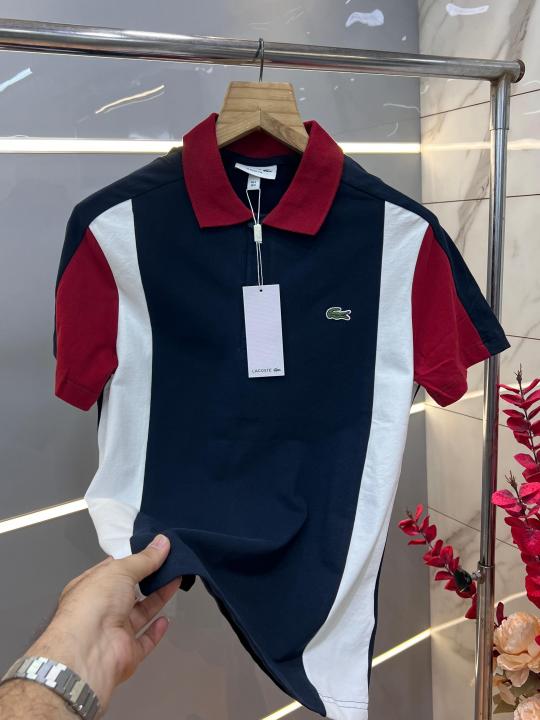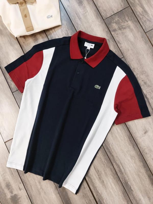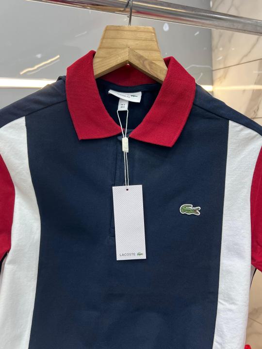 Lacost e Navy Premium Cotton Lycra Pique fabric Polo Tshirt with Front Design and Embroidered Logo 3390