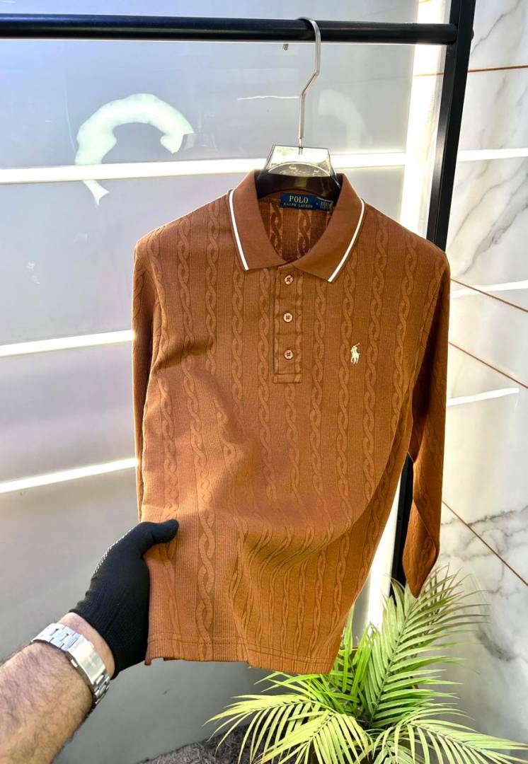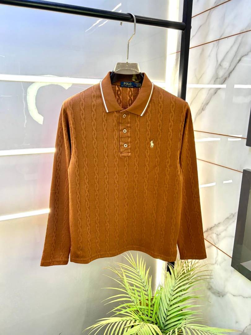 Ralph_Lauren Brown Knitted Full Sleeves Premium Collar T-shirt F2989-BR